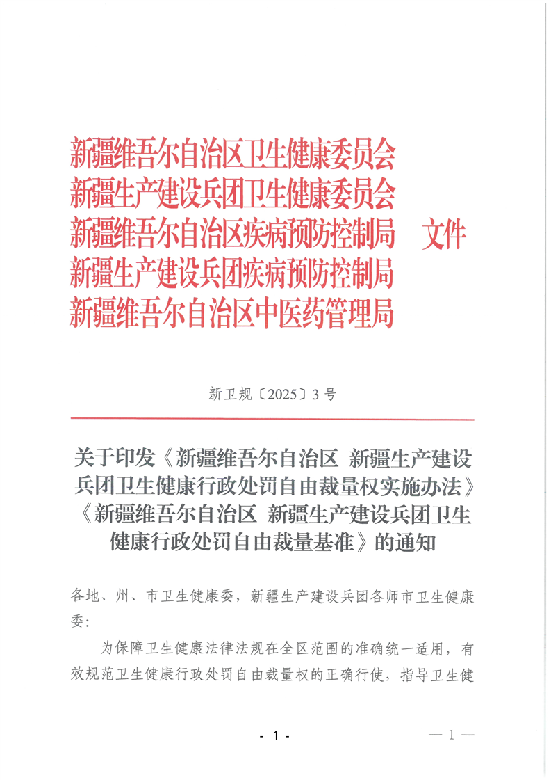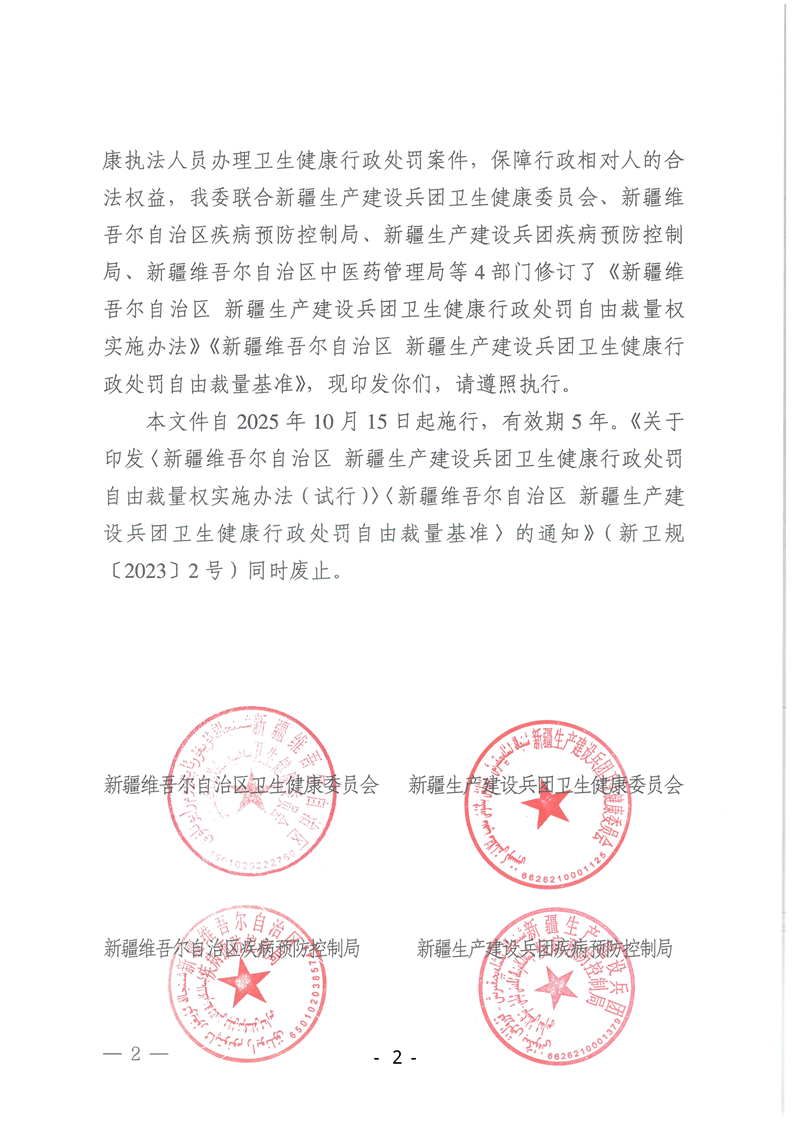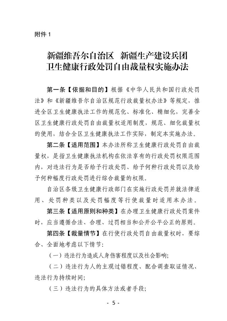 关于印发《新疆维吾尔自治区 新疆生产建设兵团卫生健康行政处罚自由裁量权实施办法》《新疆维吾尔自治区 新疆生产建设兵团卫生健康行政处罚自由裁量基准》的通知