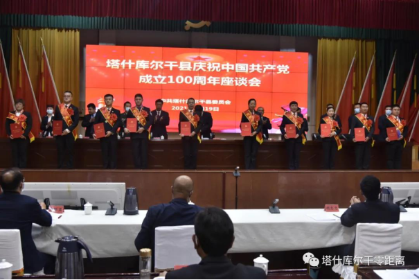 王福友强调,各级党委(党组结合学习、“三会一课”、“党旗映天山”主题党日等形势加强学习,抓好宣讲团进村、社区做好宣讲,广播电视、微信公众平台等各类媒体要在重要版面、重要时段开设专栏,刊播中央、自治区主流媒体的重压报道和权威解读,结合党史学习教育的重点内容,围绕学党史、悟思想、办实事、开新局、推动党史学习教育往深里走、往心里走。在安排部署下半年工作中,县委书记王福友要求,全县各级党组织、各族党员干部要勇于担当,奋力开创社会大局稳定和长治久安的新局面,坚持警钟长鸣,筑牢钢铁长城,常态化抓好疫情防控工作和安全生产工作,牢牢把握稳中求近工作总基调,全力推动农业提质增效,抓好特色产业、招商引资项目和项目建设,全力抓好就业质量和技能培训,激活社会消费活力,抓好放管服等重点领域改革,扎实做好对口援疆工作,努力实现今年生产总值同比增长10%,工业增加值增长20%以上,全社会固定资产投资增加25%以上,一般公共预算收入增长10%以上,社会消费品零售总额增长9%以上,城乡居民可支配收入分别增长7%、8%,确保新发展阶段有新气象。全面巩固拓展脱贫成果,推进产业振兴、人才振兴、文化振兴、生态振兴、组织振兴和乡村建设行动,不断加强全面从严治党,坚强基层战斗堡垒,奋力谱写全面建设社会主义现代化国家的塔什库尔干新篇章。会上,县委副书记、县人大常委会党组书记、政法委书记黄湘柏领读学习习近平总书记在庆祝中国共产党成立100周年大会上的讲话,县委常委、组织部长许文杰宣读了关于《塔什库尔干县优秀共产党员、优秀党务工作者和优秀党组织表彰》的决定。优秀共产党员、优秀党务工作者和优秀党组织受表彰。