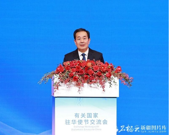 3月20日,新疆在北京举办有关国家驻华使节交流会,分享新时代中国新疆故事,共叙友好情谊,共话合作发展。自治区党委书记陈小江致辞,介绍了新疆经济社会发展和人权保障成就。自治区党委副书记、自治区主席艾尔肯·吐尼亚孜主持。