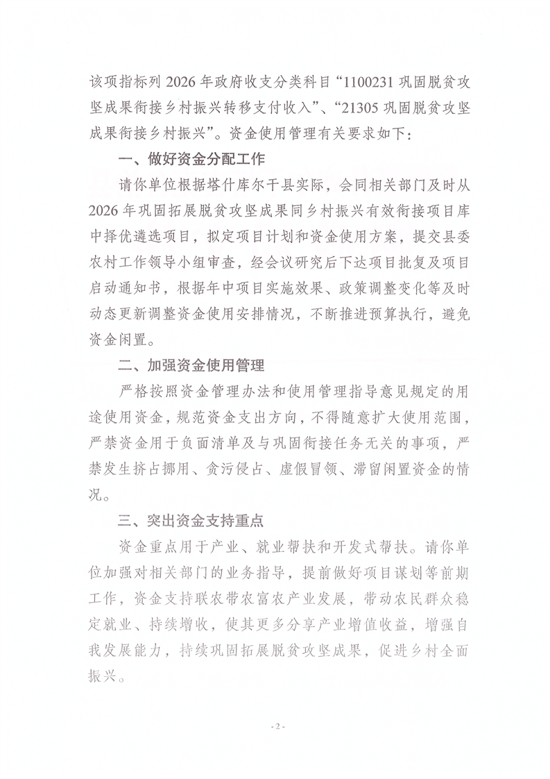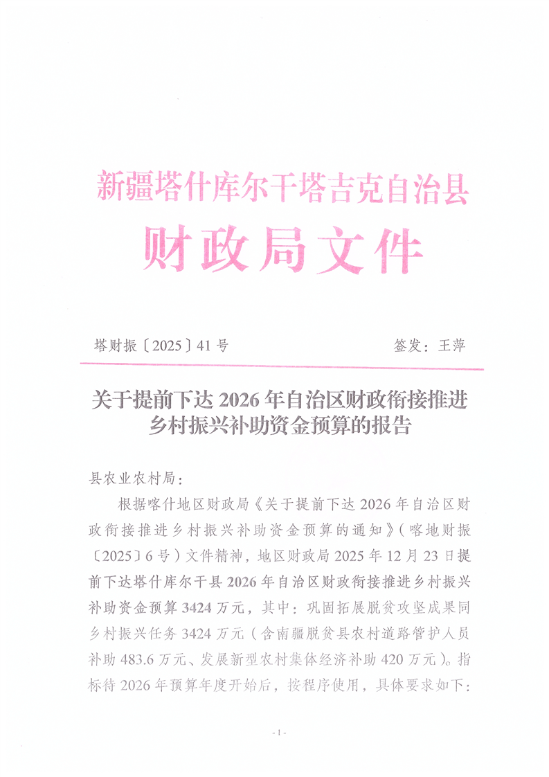 关于提前下达2026年自治区财政衔接推进乡村振兴补助资金预算的报告