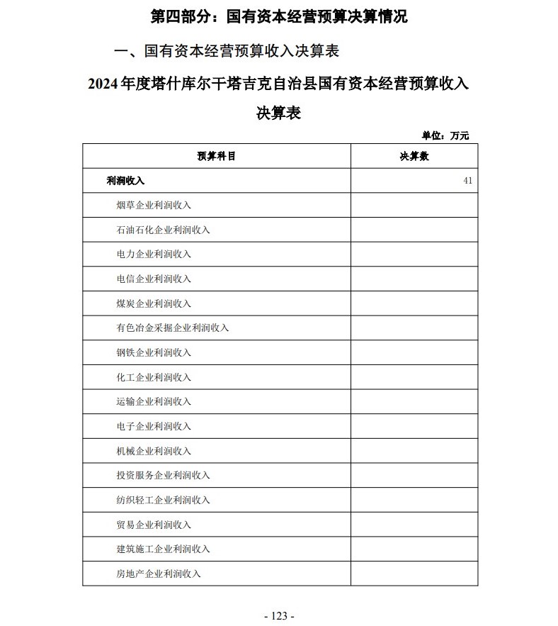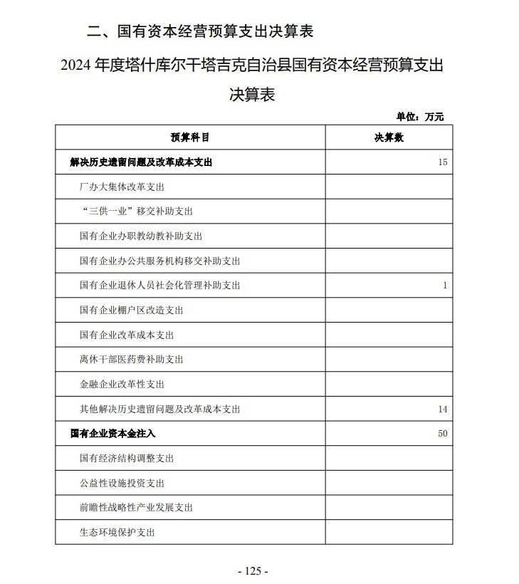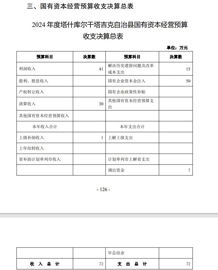2024年塔什库尔干县国有资本经营决算公开