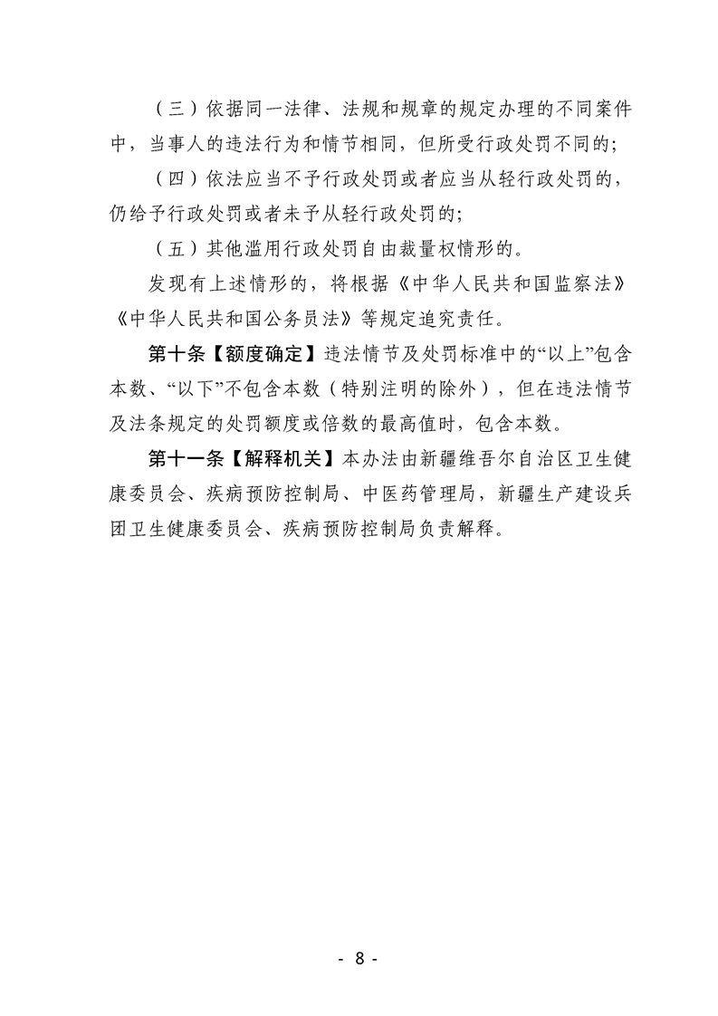 关于印发《新疆维吾尔自治区 新疆生产建设兵团卫生健康行政处罚自由裁量权实施办法》《新疆维吾尔自治区 新疆生产建设兵团卫生健康行政处罚自由裁量基准》的通知